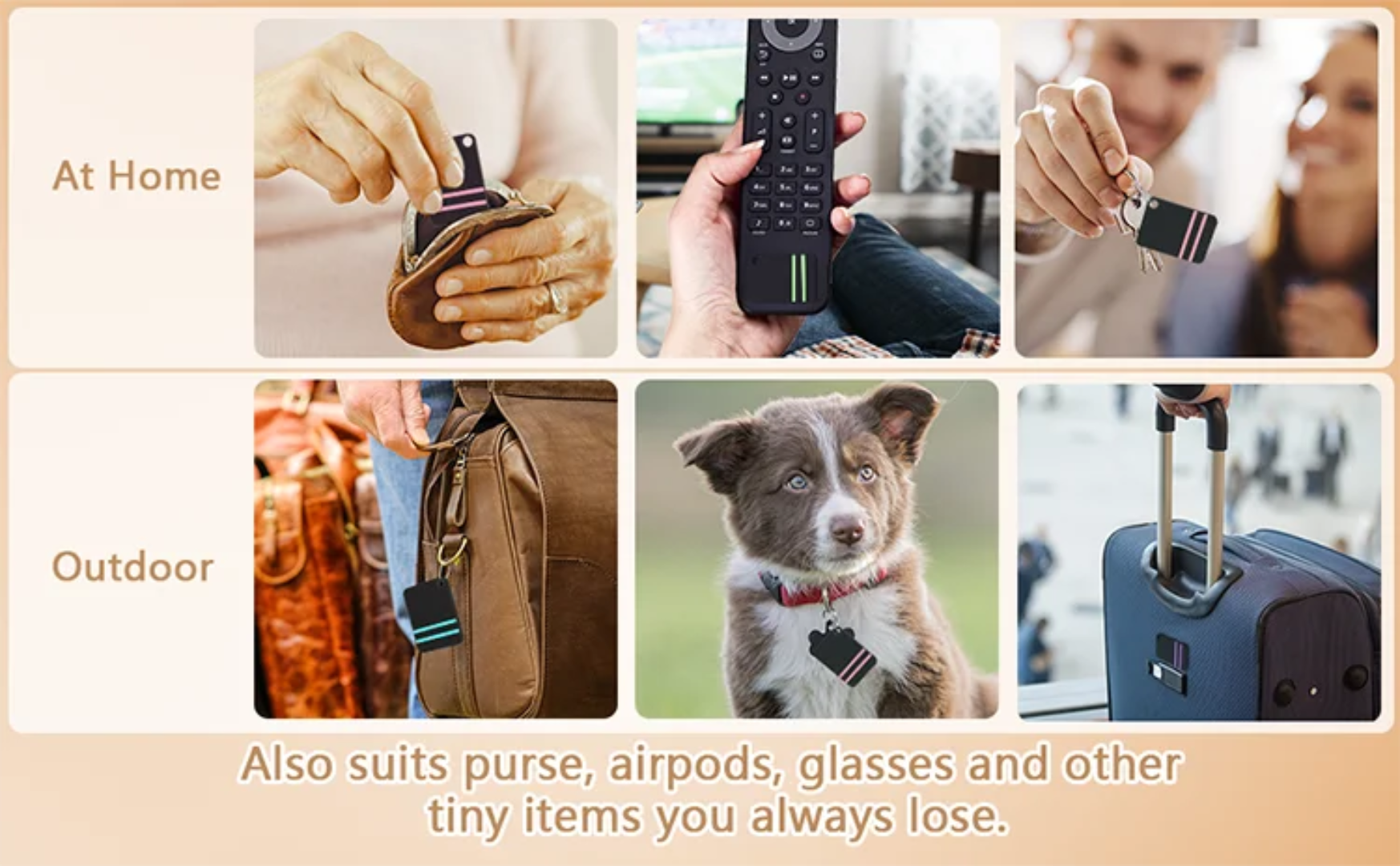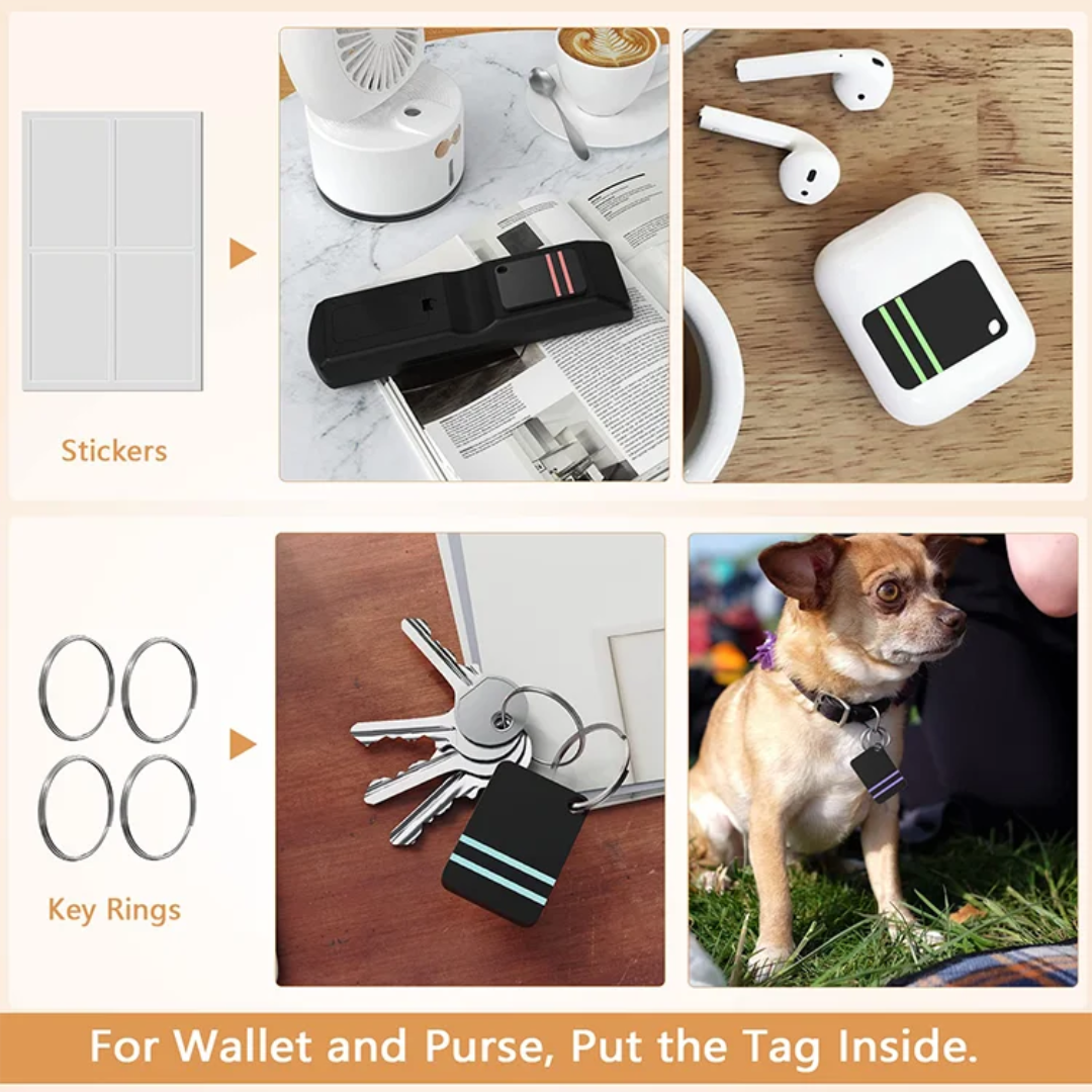 Pet finder or item tracker, which is a small device that can be attached to various items to help locate them. The tracker tags can be attached to items like keys, wallets, earbuds, or even a pet’s collar.