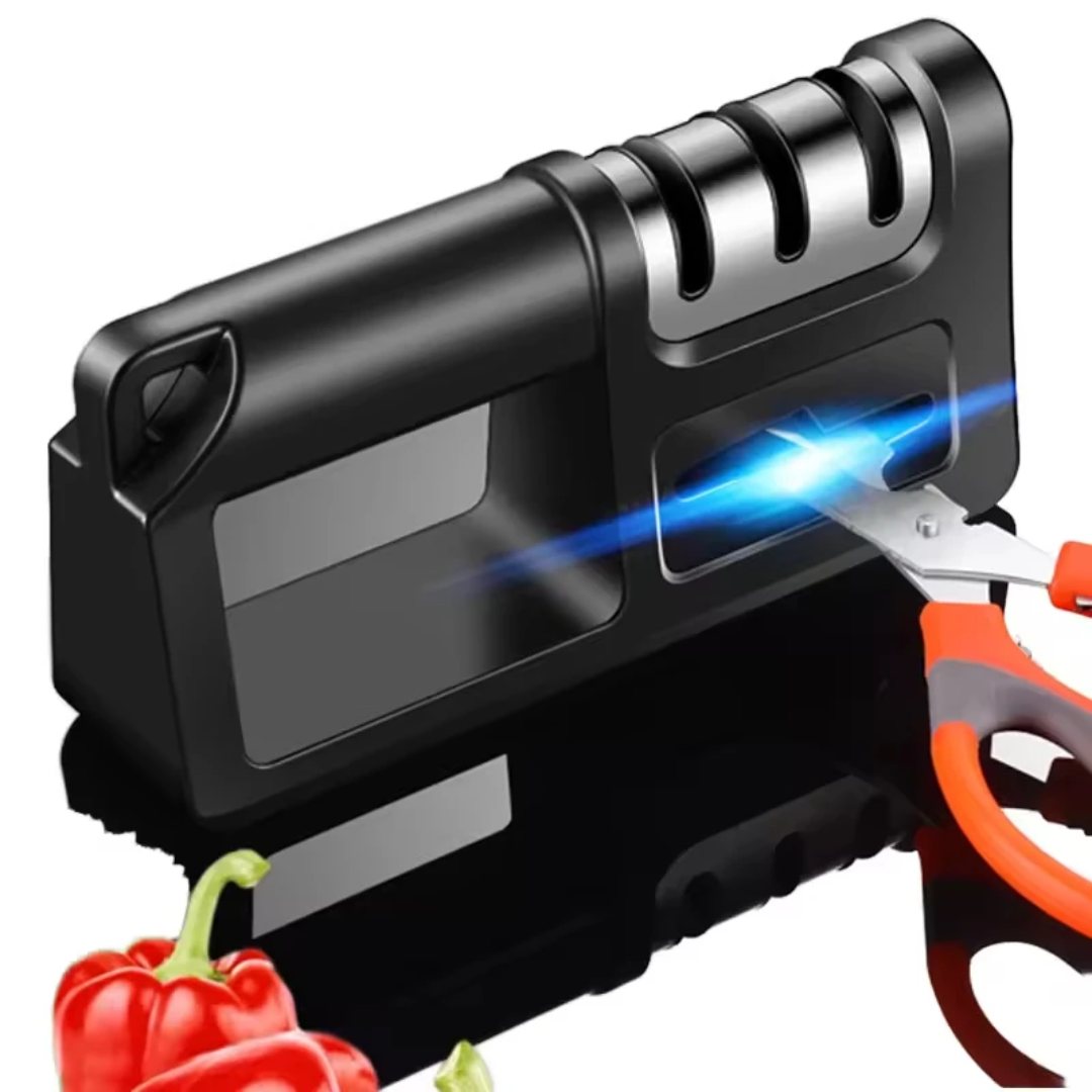 Portable 4-in-1 kitchen knife sharpener features a 3-stage manual design with diamond blade