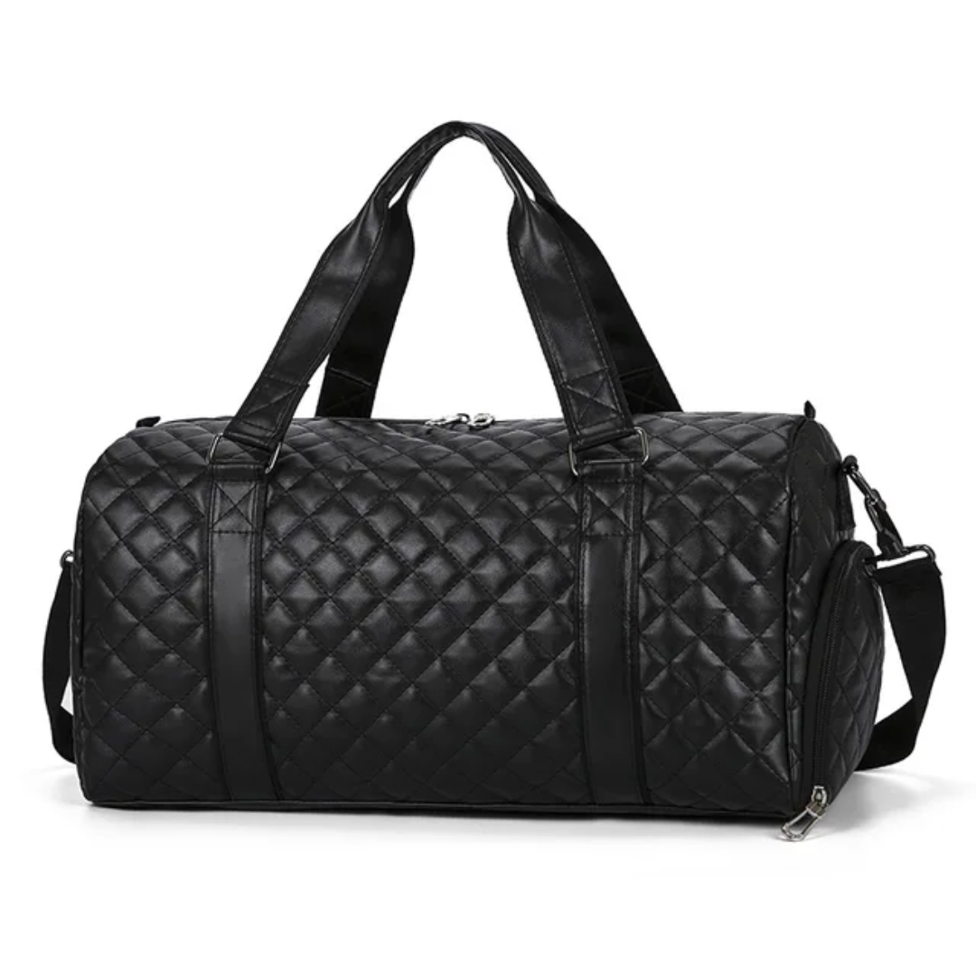 Large capacity unisex travel duffel bag, also commonly referred to as a weekender bag or gym bag.