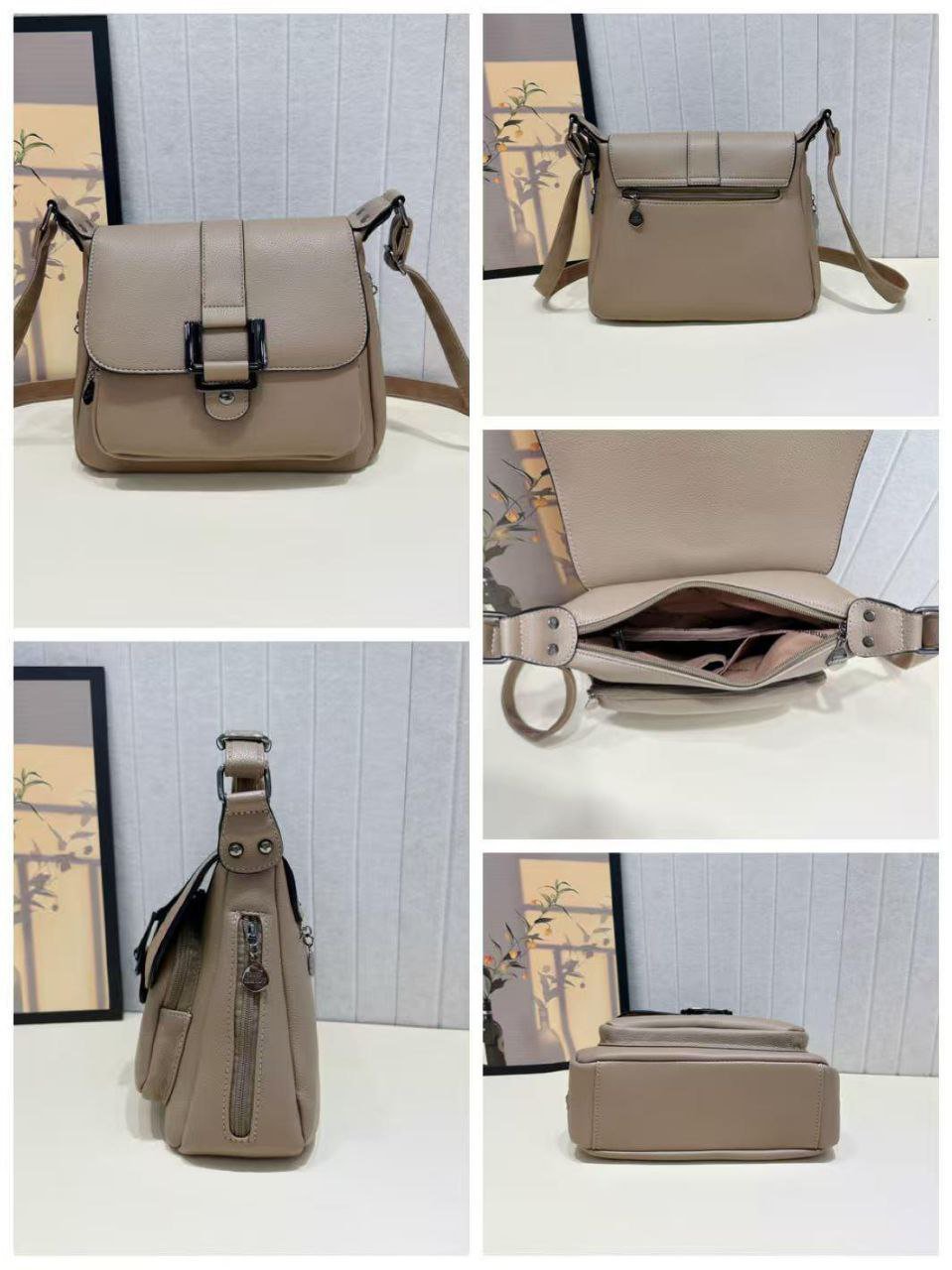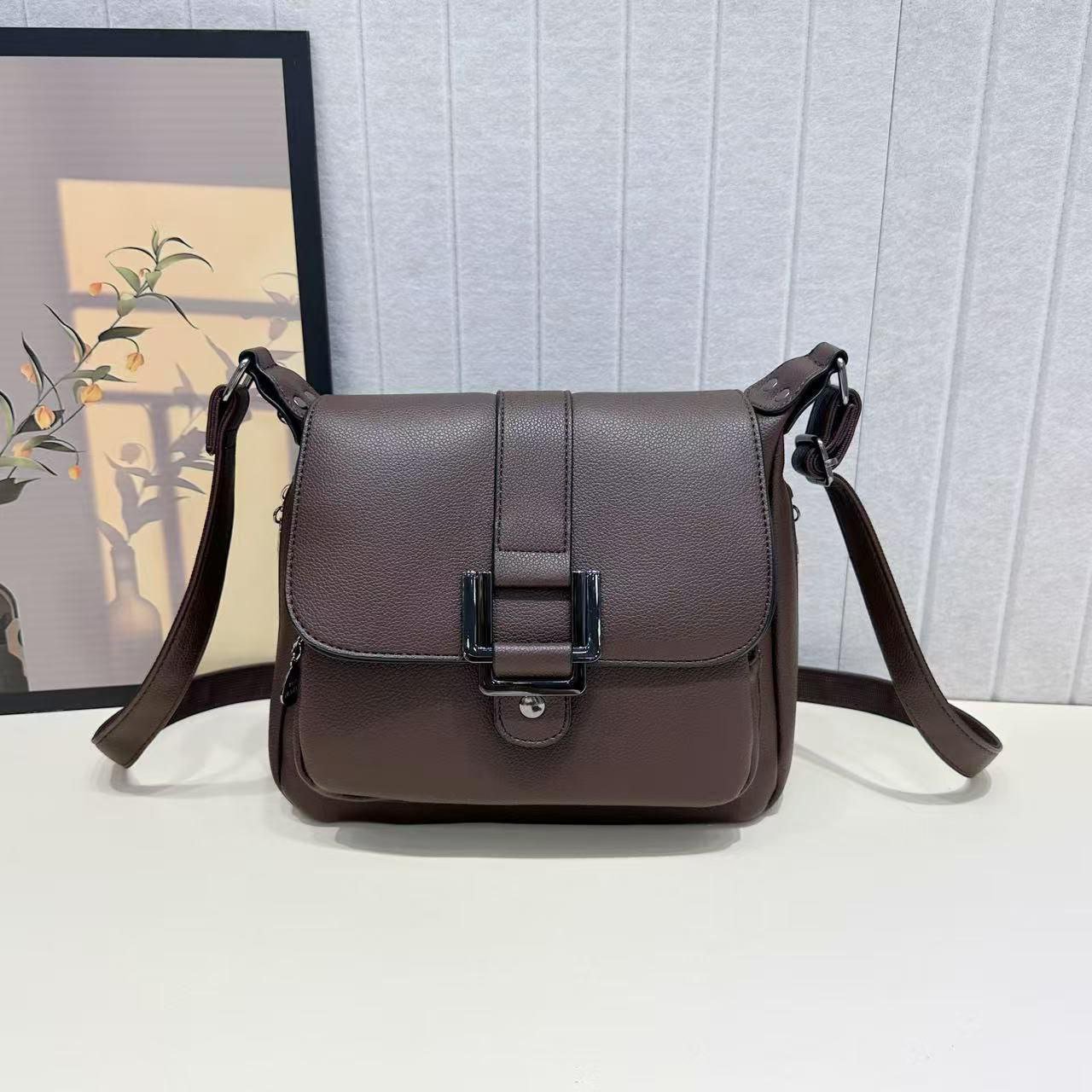 versatile sling bag with a flap closure and buckle detail, ideal for everyday use or travel.