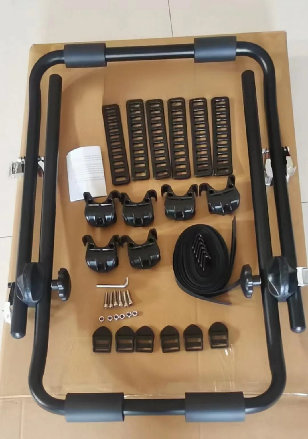 - The rack is constructed with a durable iron frame and features rubber buckles for a secure fit.